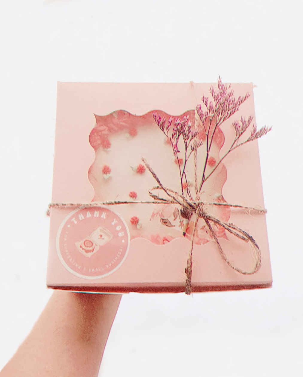 This is almost what you should expect when you get your cake! I said "almost" because there'll be more things placed with the box! It'll come in with my business card and my sticker. And you'll be getting your order with a plastic bag!